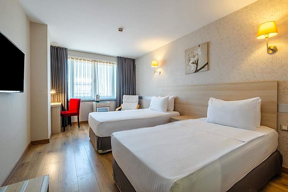 Offering free toiletries, this twin room includes a private bathroom with a shower, a hairdryer and slippers. The air-conditioned twin room offers a flat-screen TV with satellite channels, a mini-bar, a wardrobe, a safe deposit box as well as city views.