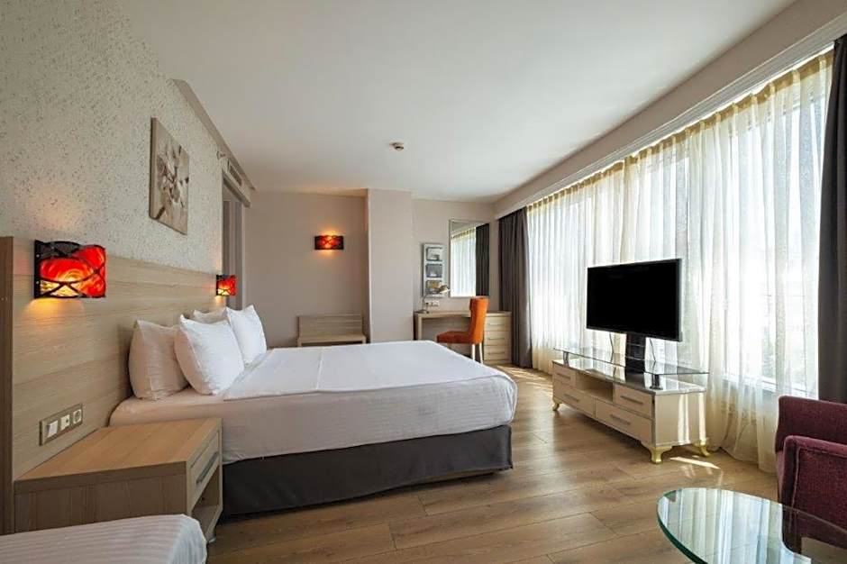 The air-conditioned suite features 1 bedroom and 1 bathroom with a shower and a hairdryer. The suite offers a mini-bar, a seating area, a wardrobe, a flat-screen TV with satellite channels, as well as city views. The unit offers 2 beds.